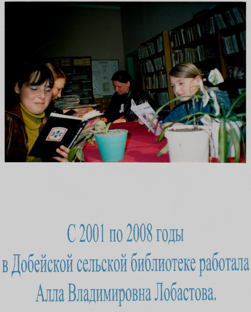 В библиотеке работала Лобастова Алла Владимировна 1969 г.р. Образование средне-техническое.