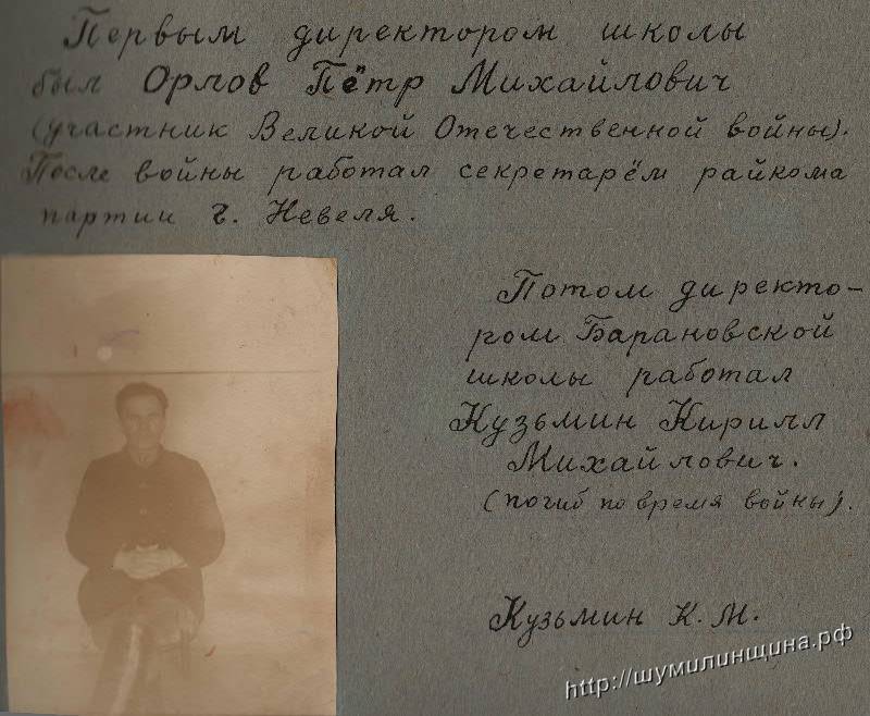 25.06.1946г. Директор Барановской НСШ - Пиульский В.В., учитель - Жупиков В.Я.
