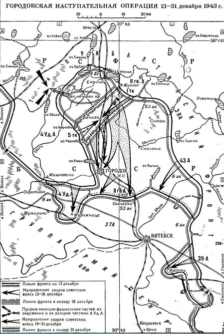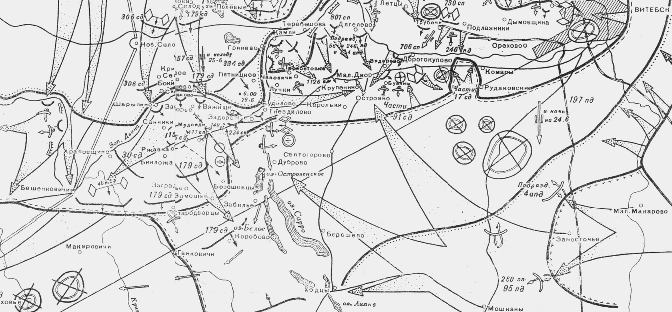 • 92-й стрелковый корпус (204-я, 145-я стрелковые дивизии и 155-й укрепленный район) с двумя истребительно-противотанковыми артиллерийскими полками получил задачу, продолжая оборону на фронте Чисти, Цыганы, свх. Довжа, Койтово, быть в готовности для перехода в наступление в направлениях пос. Старое Село и свх. Довжа, Витебск.