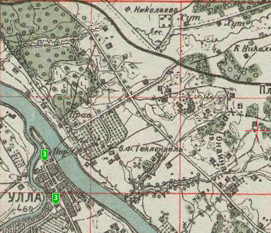 Местечко Текленвиль (видимо с польского от имени Текля, Teklinwill) располагалось южнее Рижского тракта ( между трактом и Двиной). В конце 19 века Тэкленвиль перешел в собственность фон Фальтина, по данным на 1902 год здесь было крупнейшее в Полоцком уезде промпредприятие: кожевенно-строгальный завод, 25 рабочих, работала паромная переправа в Уллу. Здесь был католический приход от Улльского костела.