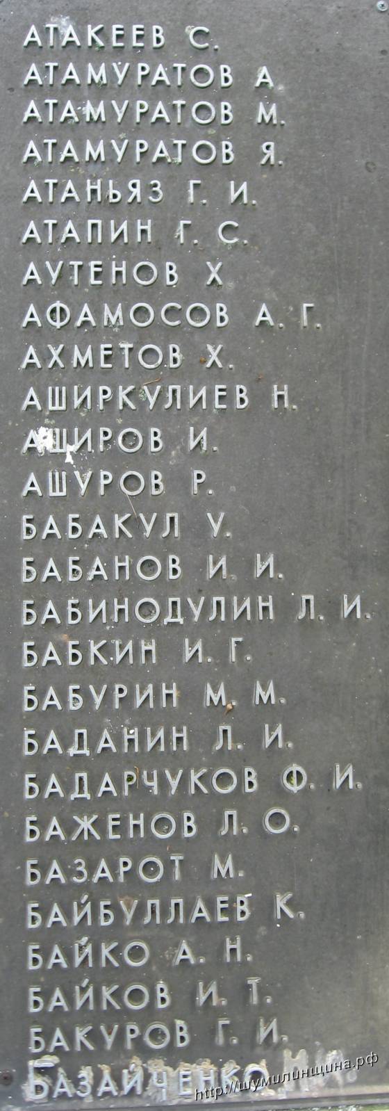 Фамилия не правильно указана на плите. Место Ширинов Р указан ШириповР. Красноармейец призван из Ленинабадского РВК. Это отец моей тёщи.