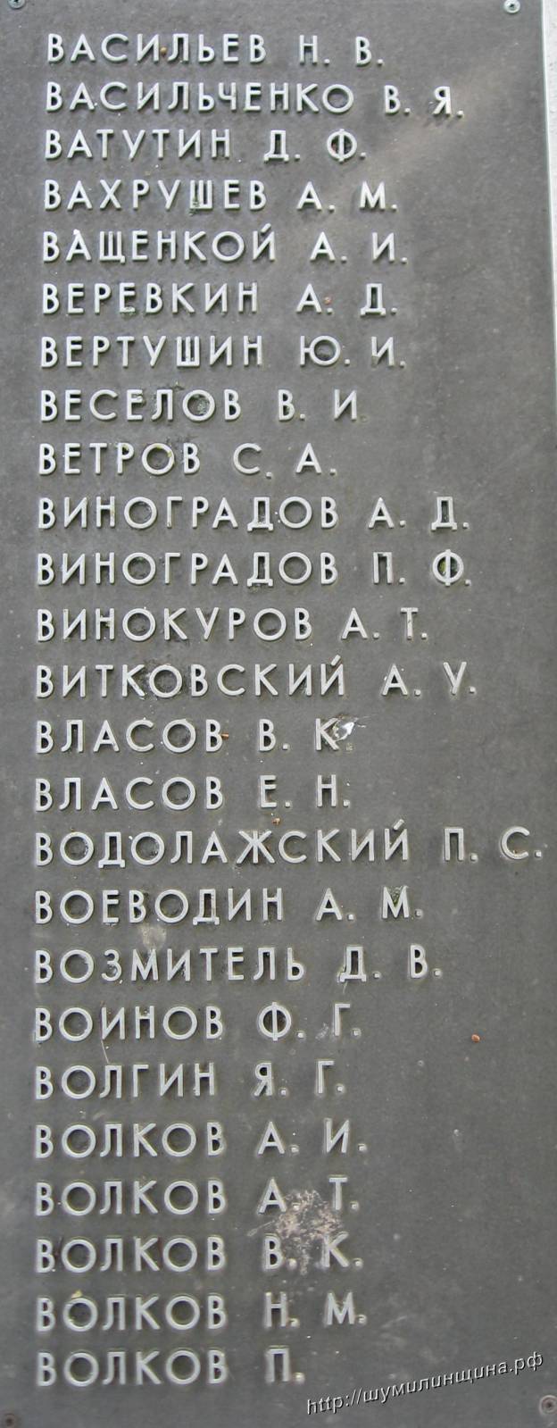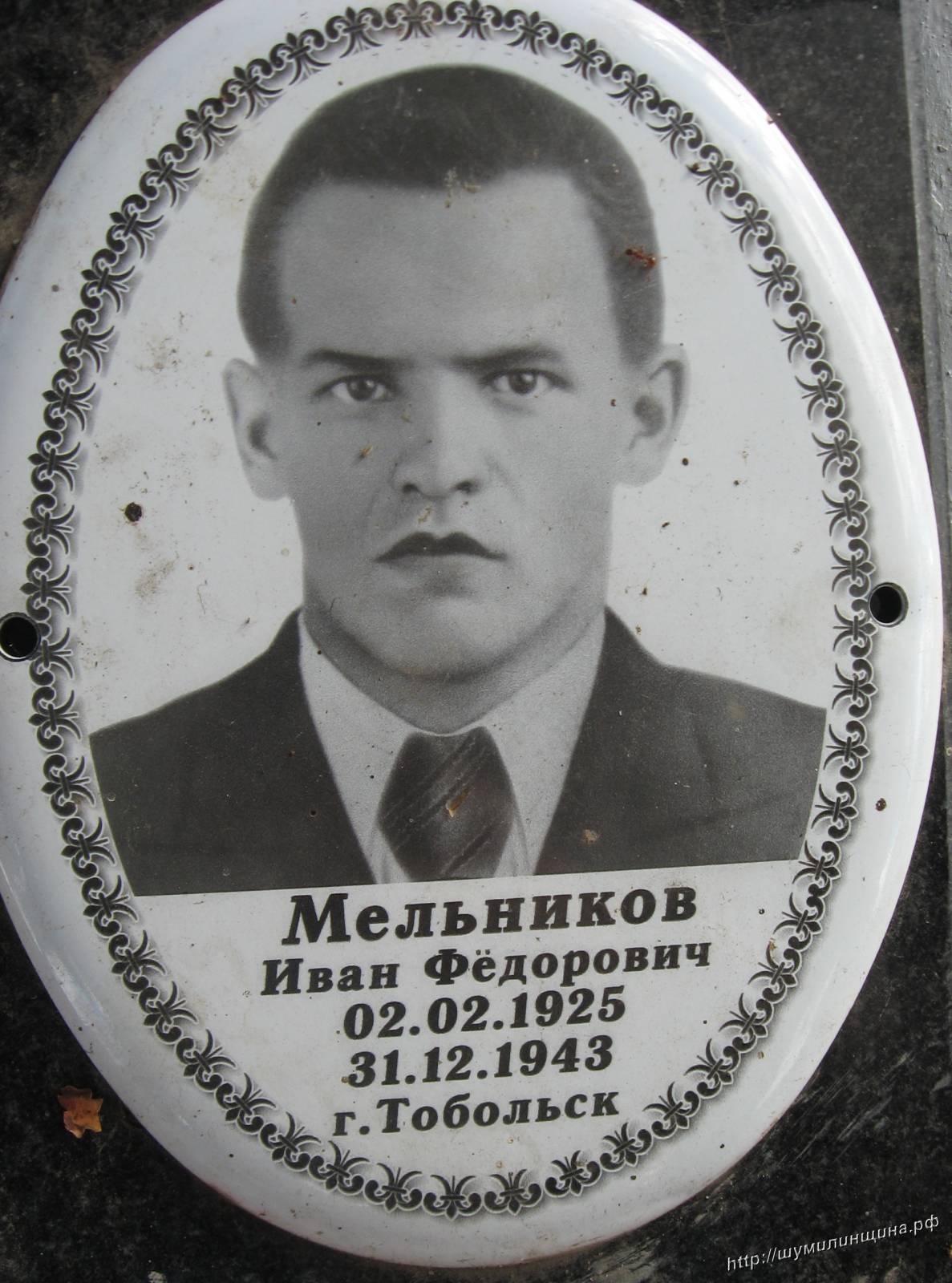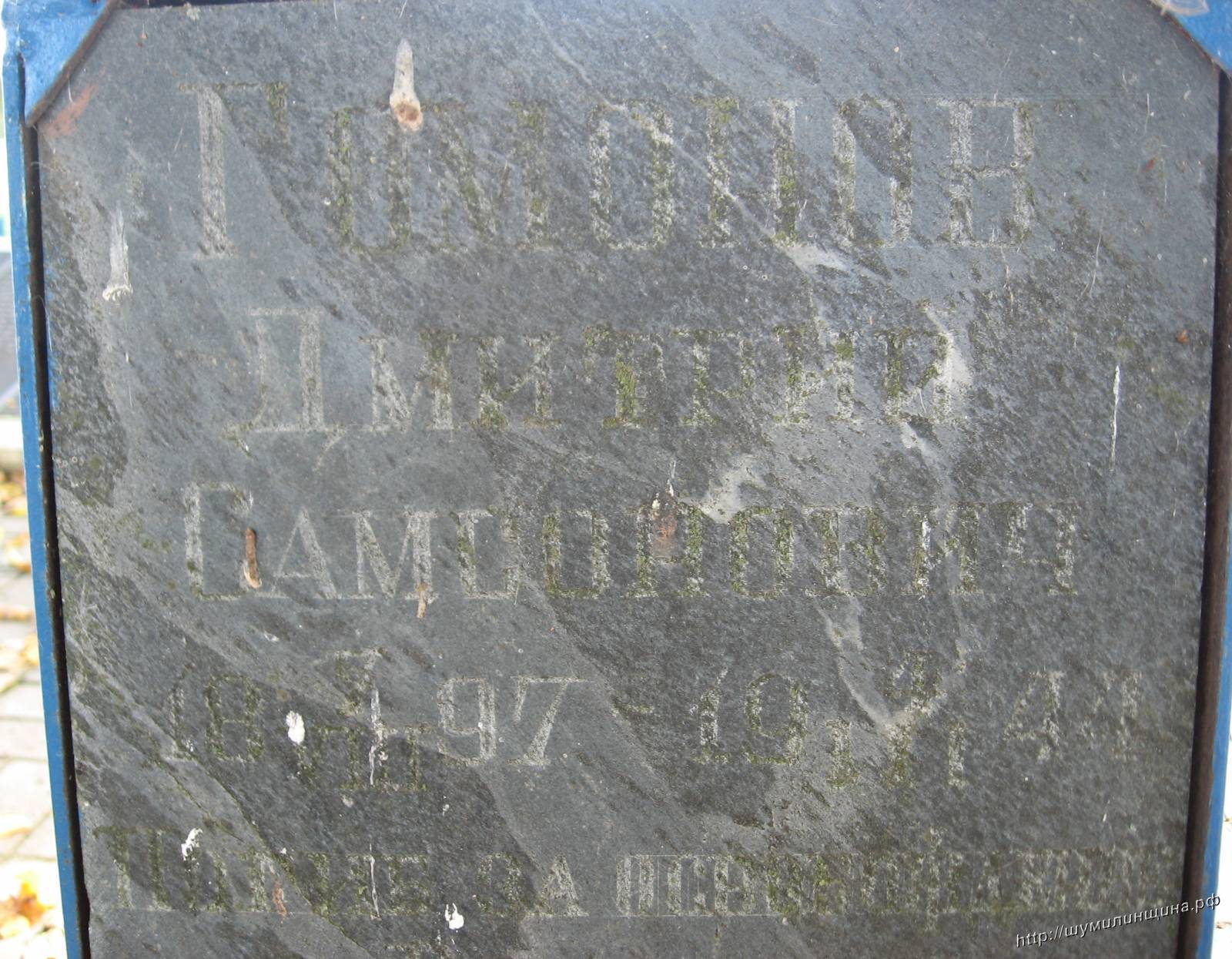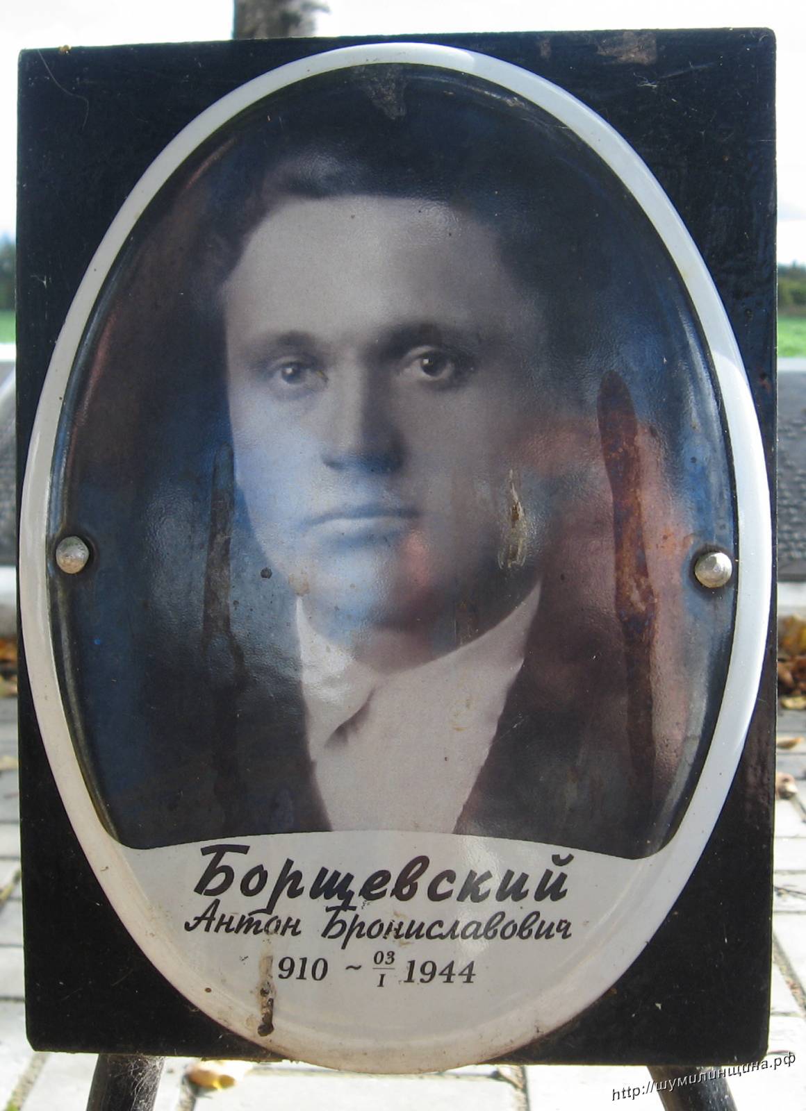 Первичное место захоронения Витебская обл., Городокский р-он, д. Дворище. На фото захоронения д. Дворище Шумилинского района его фамилии нет. Буду признательна за любую информацию.
